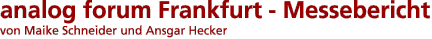 Aber wahrscheinlich interessiert Euch weniger, was mir so gefallen hat (ich sag es trotzdem: alles!!), Ihr seid daran interessiert, was und wer da war. Übrigens, selbst schuld, wer nicht hier war und alles im Original gehört hat. Eines zum Schluss: es ist fabelhaft, wie alle miteinander hier zusammenarbeiten. Wir AAAler können Stolz sein, was wir hier leisten, die Aussteller darauf, was Sie uns zeigen und wir alle, dass dieses analog forum vom ersten Moment an harmonisch einem der schönsten Momente des Lebens nachgeht: Musik zu genießen...