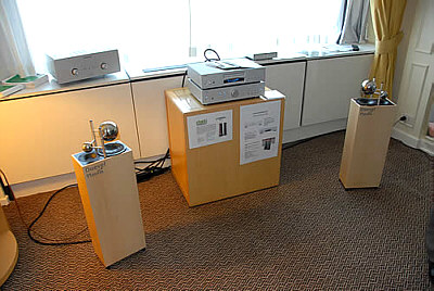 Dans une autre pièce, vous pouviez voir une autre surprenante réalisation de cher Duevel, les enceintes Planet, aussi agréables à regarder qu’à écouter. La sensation de garder la même scène sonore en changeant de point d’écoute est fort agréable. Le toute fonctionnait avec les CEC CD3300R et AMP3300R.