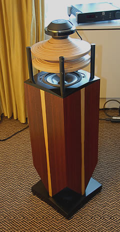 BRUSSELS HIFI HOME CINEMA SHOW S 2006 a eu lieu les 1 & 2 octobre à Bruxelles Les extraordinaires enceintes Planet de DUEVEL à noter l'excellente image sonore obtenue avec les deux lentilles sphériques pour une meilleure diffusion de l'aigu et du médium grave