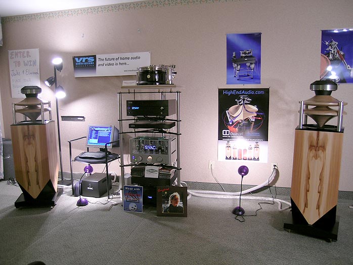 VRS Audio systems showed the Duevel Jupiter speakers ($26,000 pr), VRS Audio Revelation, and VAC Phi Kappa. I liked this room a lot. Which is spelled "a lot" and not "alot."