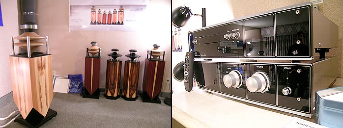 HighEnd Audio fronted their Duevel setup with both analog and digital, the former compliments of Dutch Pluto turntable fame (due for review by Jules sometime in 05), the latter via Vince Sander's VRS Systems hard-drive server. The omni-dispersion principle of the German speakers made for an exceptionally airy if ultimately slightly soft-focus sound which is the particular hallmark of such designs. Duevel's new battery-powered CD player made its US debut in a silent display [below right].