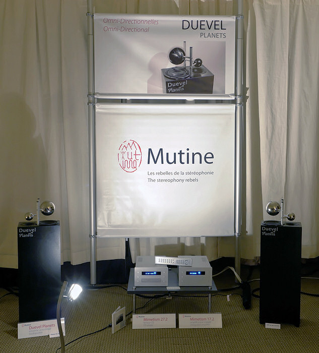 Mutine's Pascal Ravach was demonstrating the small, but striking, Duevel Planets omnidirectional speakers, ...