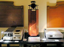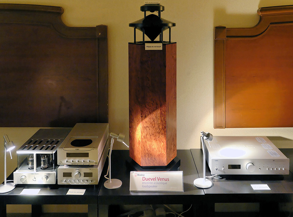 The second Mutine room featured a much less expensive omnidirectional speaker, the Duevel Planets. Operating with a Mimetism 27.2 player and 17.2 integrated amplifier, it lacked the precise focus of the Diamantes, but the sound was decidedly musical, and their $1500 price tag brought the dreams of visitors much closer.