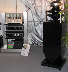 VAC Pi30i integrated amplifier was at the Munich Germany High End Society show driving Duevel's new Jupiter that features a 4-inch titanium for the upper frequencies and 12-inch paper cone woofer. An improved cabinet and crossover network make the Jupiter easier to drive with a 93dB/W/m at 8 ohms. VAC's Avatar was reviewed here and the Duevel Bella Luna loudspeaker here. |