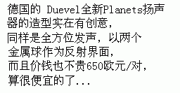 Saturday, May 27, 2006 Then there's Germany's Duevel, which is doing something completely different with its Planets loudspeaker, ... We listened to the Planets for some time and were impressed with how spacious they sounded. |