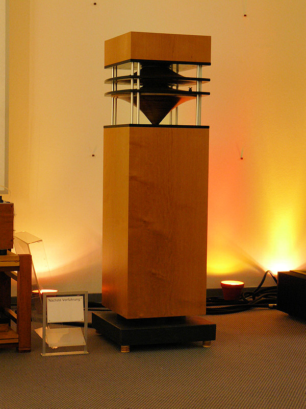 Markus Duevel showed his new Sirius speaker in the Thomas Fast room, with mister chrome dome