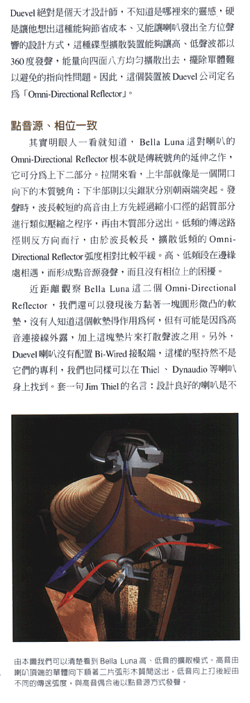 The wooden texture of Bella Luna looks and even feels very familiar to me. It turns out to be that Mr. Mark Duevel, the owner of Duevel, has designed many products for other Hi-End audio companies since 1988, when he founded Duevel. The cambered wooden disc on the top of Bella Luna is the heart of all the three Duevel loudspeaker models. Now let's have some talk about the original design concepts of Duevel.